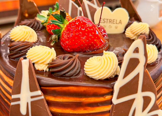 Tortas irresistíveis, recheadas e decoradas com capricho. Cada fatia é uma combinação perfeita de sabor e textura.